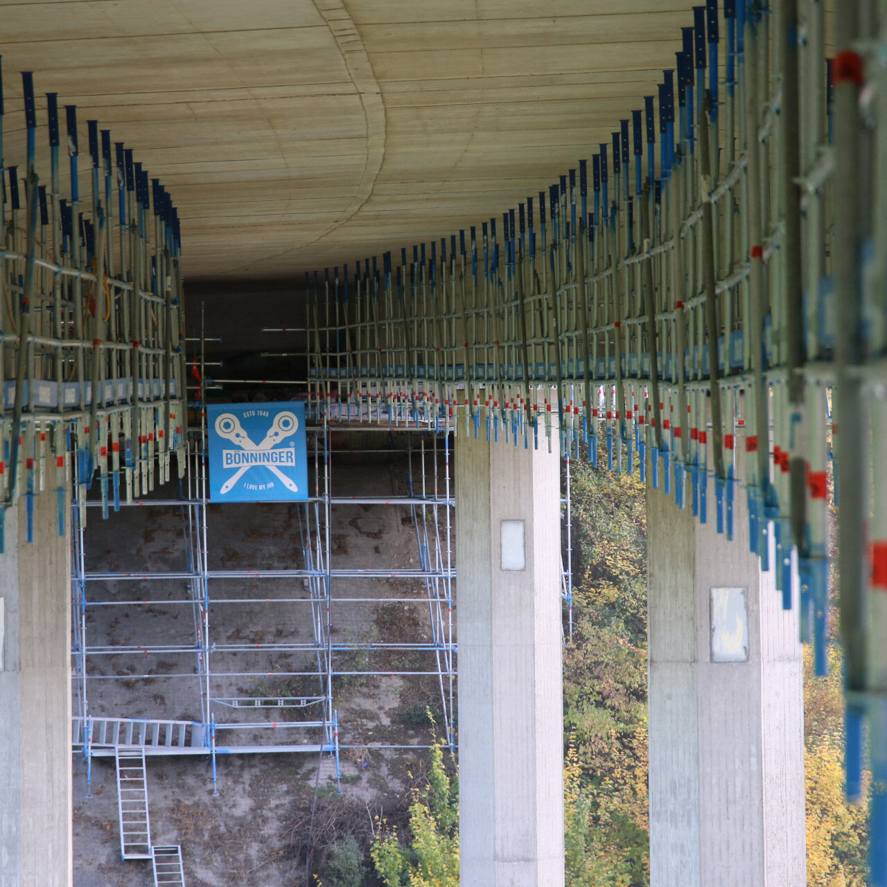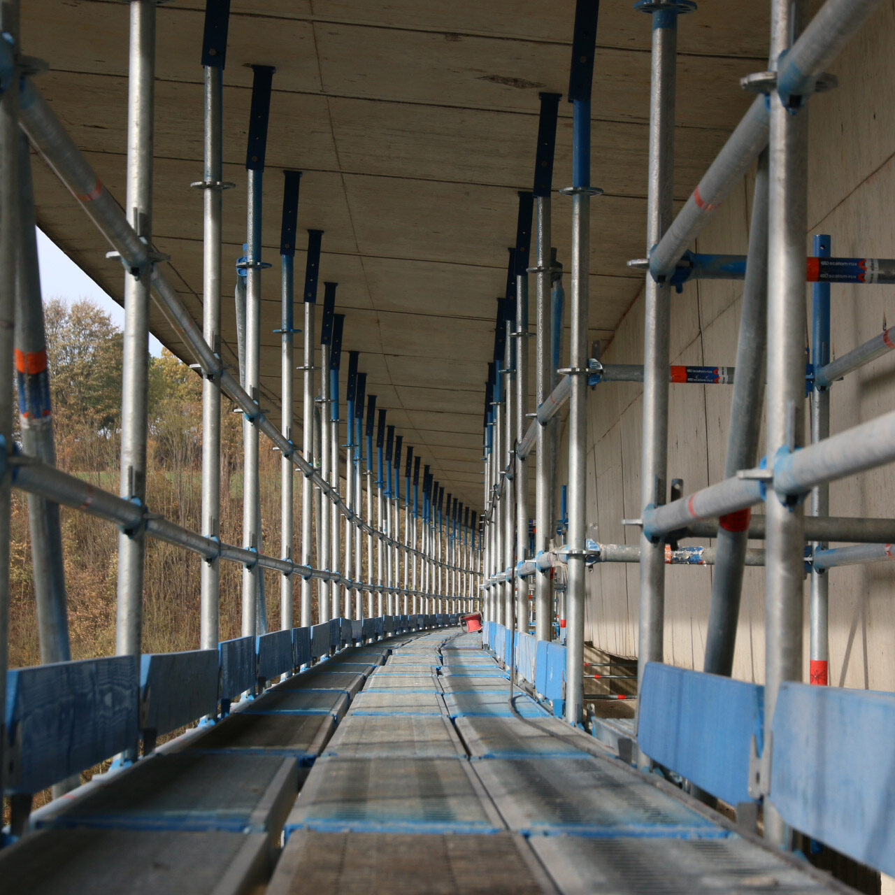 - ca. 1000 Meter Laufsteganlage aus Gerüst unterhalb der Fahrbahn