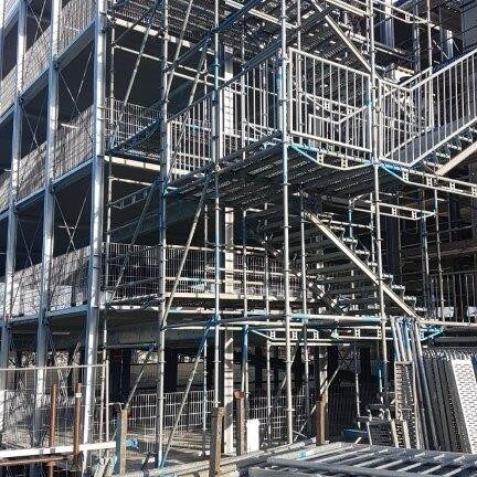 Temporäre Treppentürme und Treppenanlagen gehören zu den wichtigsten Bauteilen auf jeder Baustelle. Sie sorgen für sichere Wege zu höhergelegenen Arbeitsbereichen, dienen als Fluchtweg und ermöglichen einen reibungslosen Baustellenbetrieb. Unsere Treppenlösungen bieten nicht nur hohe Stabilität und Rutschfestigkeit, sondern lassen sich auch flexibel an das jeweilige Bauvorhaben anpassen.