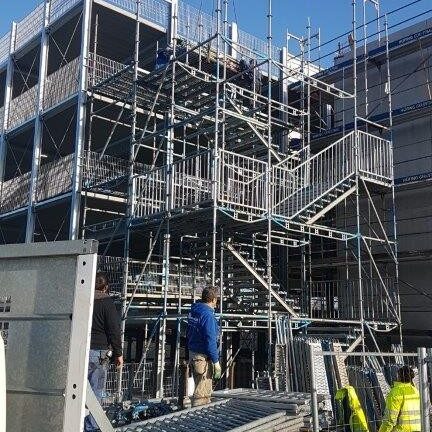 - Temporäres Behelfstreppenhaus für Bauarbeiten am Parkhaus